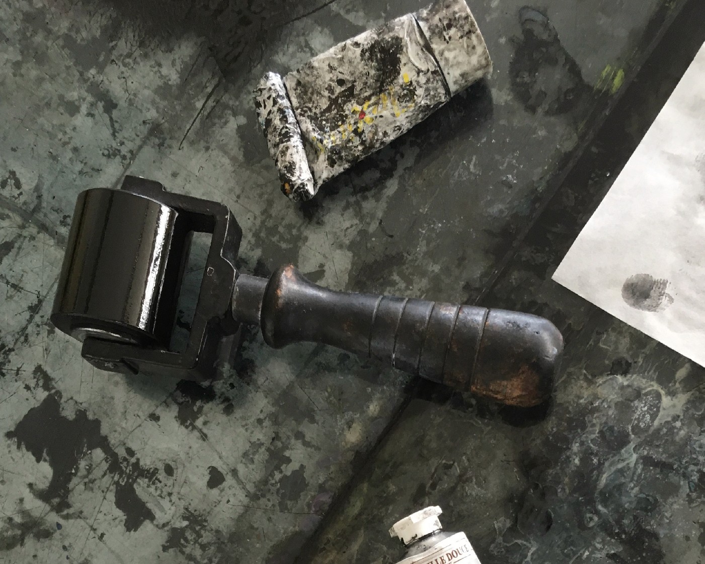 Warsztaty dla grupy studentów grafiki na mojej macierzystej uczelni – Wydział Sztuk Pięknych Uniwersytetu Rzeszowskiego. Warsztaty mają na celu umożliwienie samodzielne eksperymentowanie w technice mohuhana minimalnym kosztem.