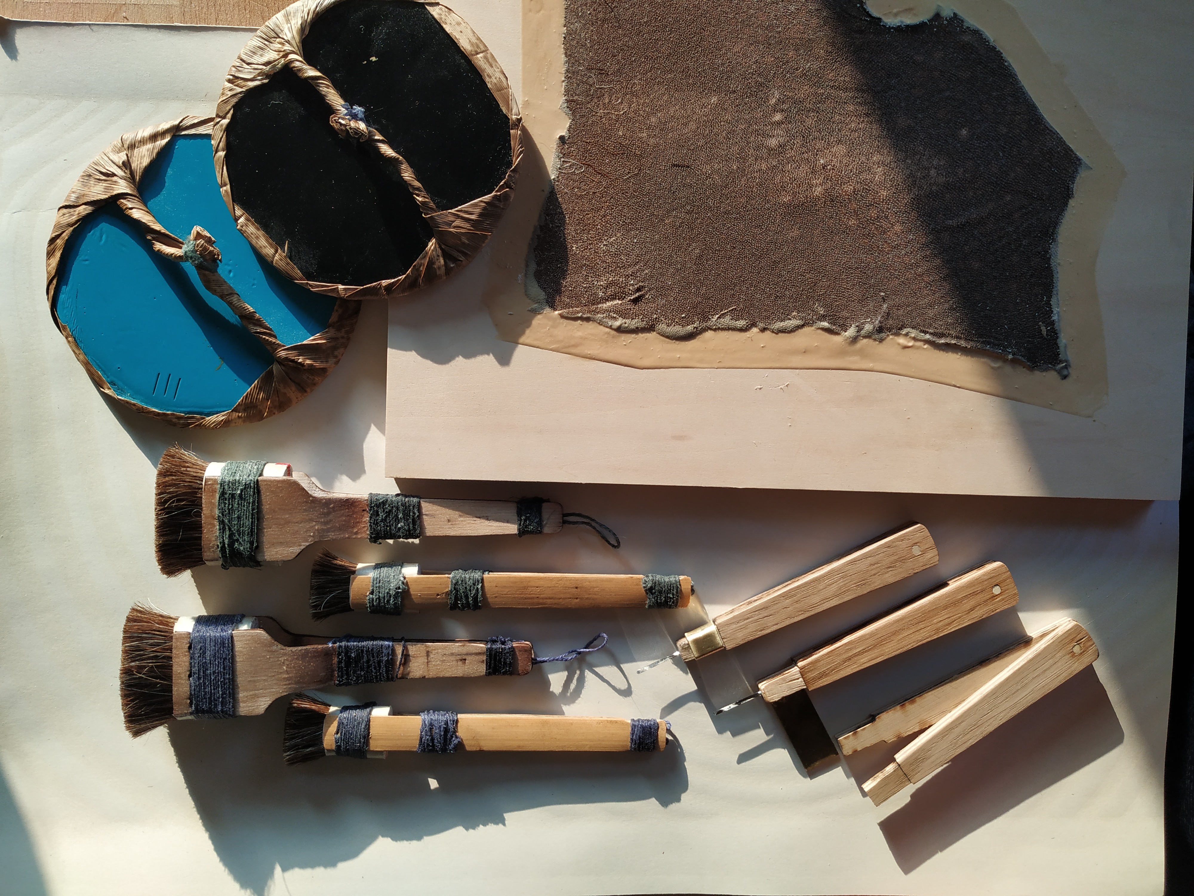 31 maj 2026 – przygotowanie papieru washi (zaklejanie dosa), przerabianie dostępnych pędzli i szczotek do druku mokuhanga;