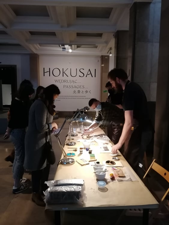 As part of the exhibition Hokusai. Wandering... I organized a demonstration of the mokuhanga printing technique. I have been dealing with the mokuhanga technique since 2019 as part of my doctoral thesis, although the first attempts at this technique date back to 2012.